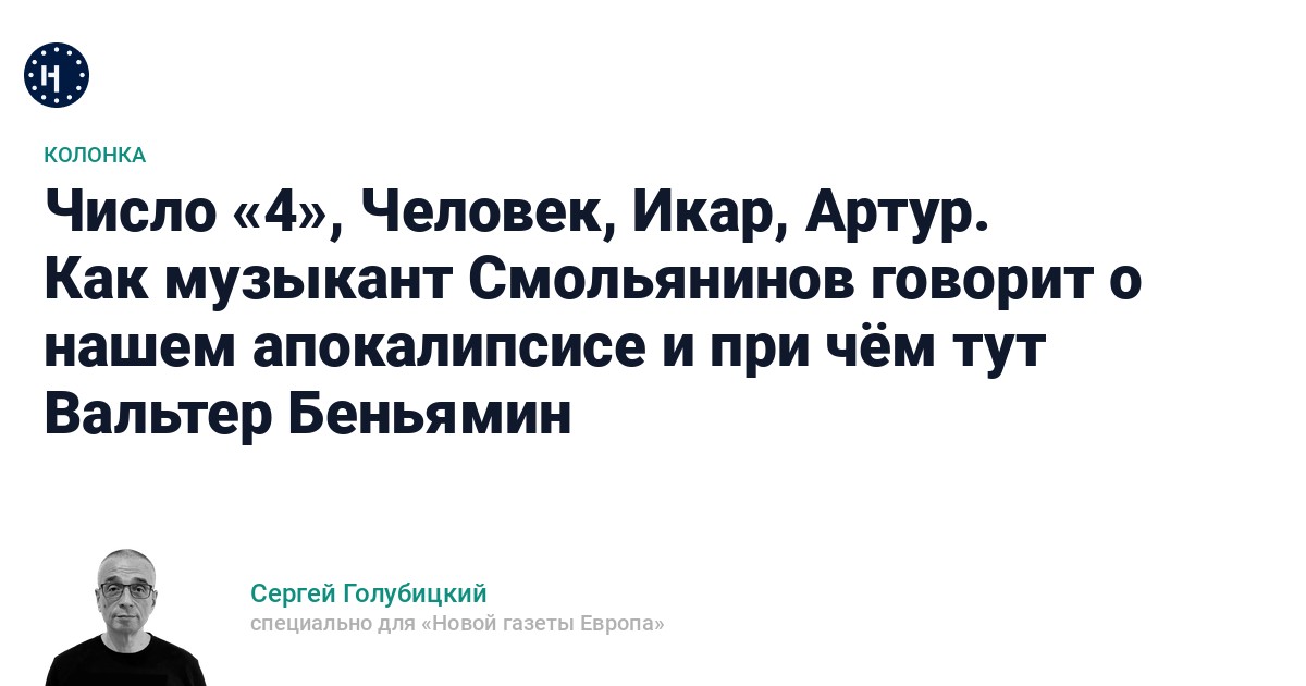 Есть, однако, небольшая предыстория, которая позволила мне лично воспринимать треки альбома «4» совершенно в ином свете. Пару месяцев назад причудливая судьба свела меня с Артуром Смольяниновым, и у меня появилась возможность внимательно выслушать его мысли и суждения о тех самых конкретных трагических обстоятельствах, которые в его музыкальном творчестве оказались (полагаю, умышленно) вытеснены метафорами культурологии.