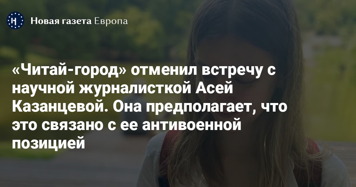 «Читай-город» отменил встречу с научной журналисткой Асей Казанцевой. Она предполагает, что это связано с ее антивоенной позицией