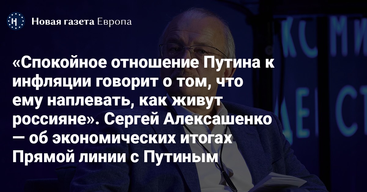 «Спокойное отношение Путина к инфляции говорит о том, что ему наплевать на то, как живут россияне. Инфляция является самой главной проблемой для большинства жителей страны, и она сильнее всего бьет по самым бедным и неимущим. В отличие от экономического роста, который исчерпал свой потенциал, ускорение инфляции будет продолжаться, и за отметкой 8% по итогам 2023 года нас ожидают 9% в январе-феврале и, возможно, 10% в марте», — заявляет экономист Сергей Алексашенко.