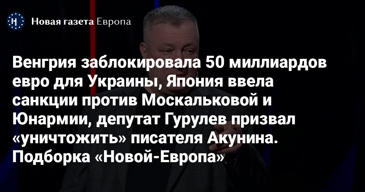 Венгрия заблокировала 50 миллиардов евро для Украины, Япония ввела санкции против Москальковой и Юнармии, депутат Гурулев призвал «уничтожить» писателя Акунина