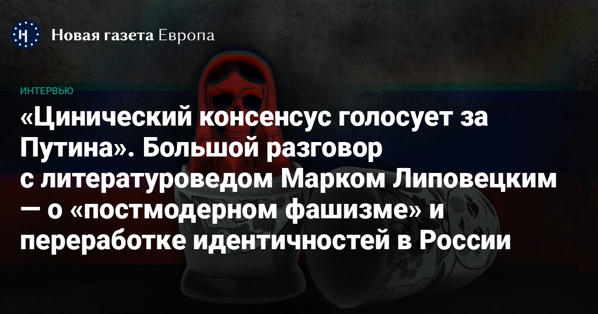 После начала полномасштабной войны против Украины Липовецкий стал активным участником дискуссий о литературе во время войны, культурных истоках фашизма и об идеологии путинского режима — правомерности и рамках использования термина «рашизм». «Новая газета Европа» поговорила с Марком Липовецким об идеологическом строительстве, цинизме, сакрализации насилия и автофикшне.