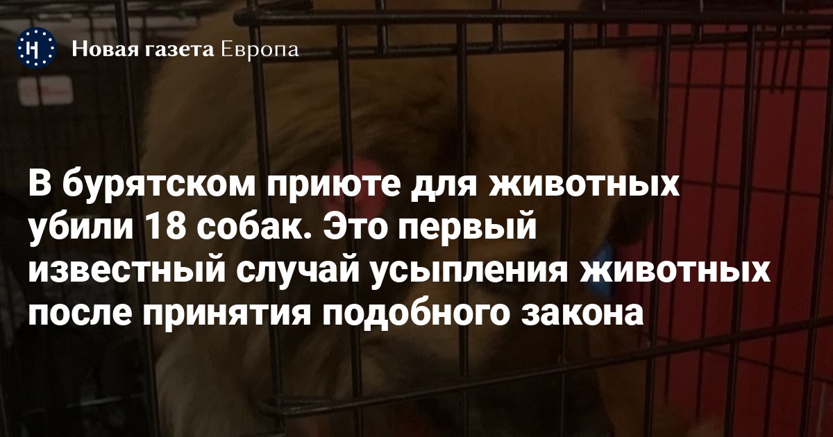 В ноябре 2023 года власти Бурятии приняли закон, который позволяет убивать бездомных животных, которые проявляют агрессию или неизлечимо больны. Согласно закону, усыплять бездомных собак необходимо спустя 30 дней с момента их отлова. До этого дня о случаях умерщвления животных не сообщалось.