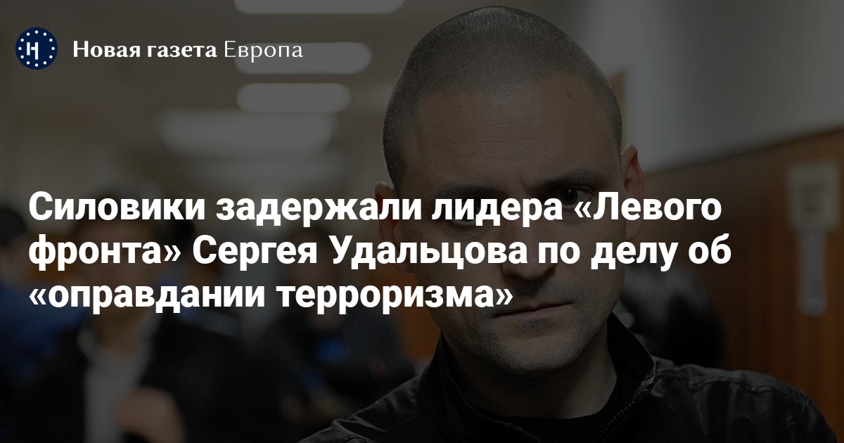 Лидера «Левого фронта» Сергея Удальцова задержали по обвинению о «оправдании терроризма». Об этом сообщила его адвокат Виолетта Волкова.