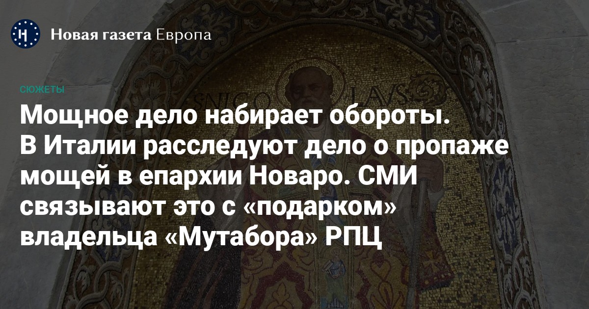 В Италии расследуют дело о пропаже мощей в епархии Новаро. СМИ связывают это с «подарком» владельца «Мутабора» РПЦ