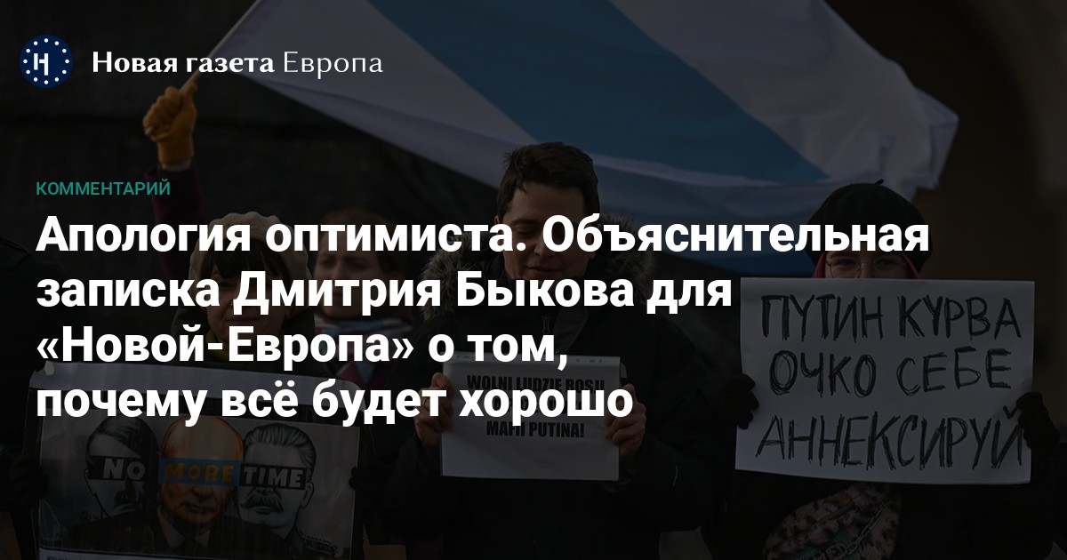А если нет — что поделаешь, оптимисты в очередной раз ошибутся. Но им останется одно существенное утешение. Быть пессимистом в переломные времена, независимо от того, как всё обернется, — значит играть на стороне зла. Этого я себе позволить не могу. Не для этого я, вопреки всем пессимистам, до сих пор живу.