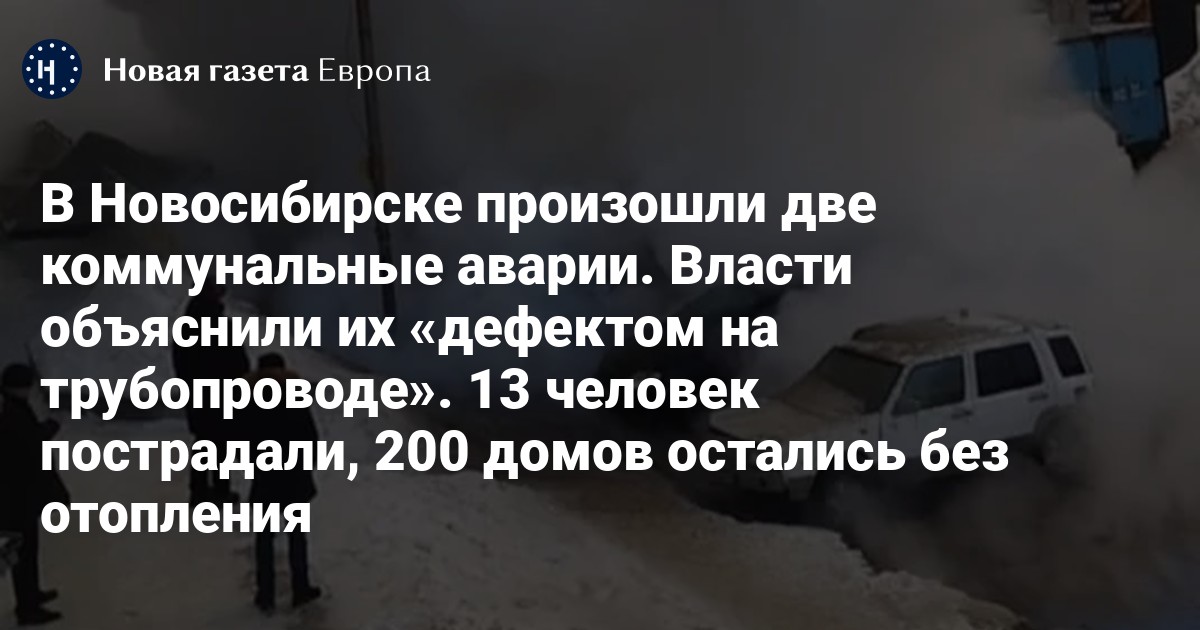 Фонтан кипятка на Петропавловской улице поднялся до уровня 7 этажа. 13 человек получили термические ожоги нижних конечностей I-II степени, пишет издание «НГС» со ссылкой на областной Минздрав. 200 домов остались без отопления, проинформировали в мэрии Новосибирска.