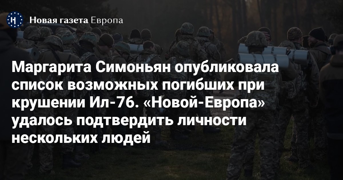 Журналистка Маргарита Симоньян опубликовала в своем телеграм-канале список из 65 украинских военнопленных, которые, по ее словам, погибли при крушении самолета Ил-76 в Белгородской области. «Новая газета Европа» выяснила, что как минимум 13 из них точно были в российском плену, а один из них даже был возвращен в Украину.