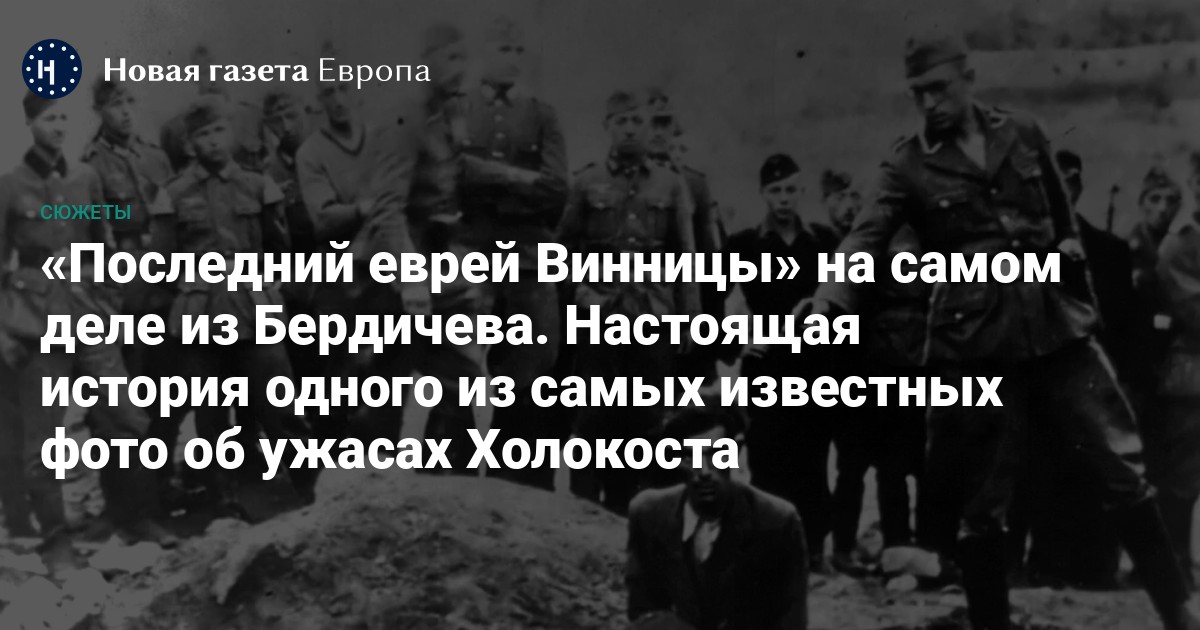 Одной из наиболее известных и ужасающих фотографий, свидетельствующих об ужасах Холокоста, остается снимок расстрела еврейского мужчины у братской могилы, в которой уже лежат много других людей, убитых, очевидно, несколькими минутами и секундами ранее. Фотография известна под названием «Последний еврей Винницы», но до недавнего времени не было ясно, где и когда всё это произошло (ранее не конкретно указывалось, что в период с 1941 по 1943 год). Теперь место и дата установлены почти со стопроцентной точностью. Ко Дню памяти жертв Холокоста — «Новая-Европа» рассказывает об истории снимка, ставшего одним из символов беспримерной жестокости гитлеровского режима.
