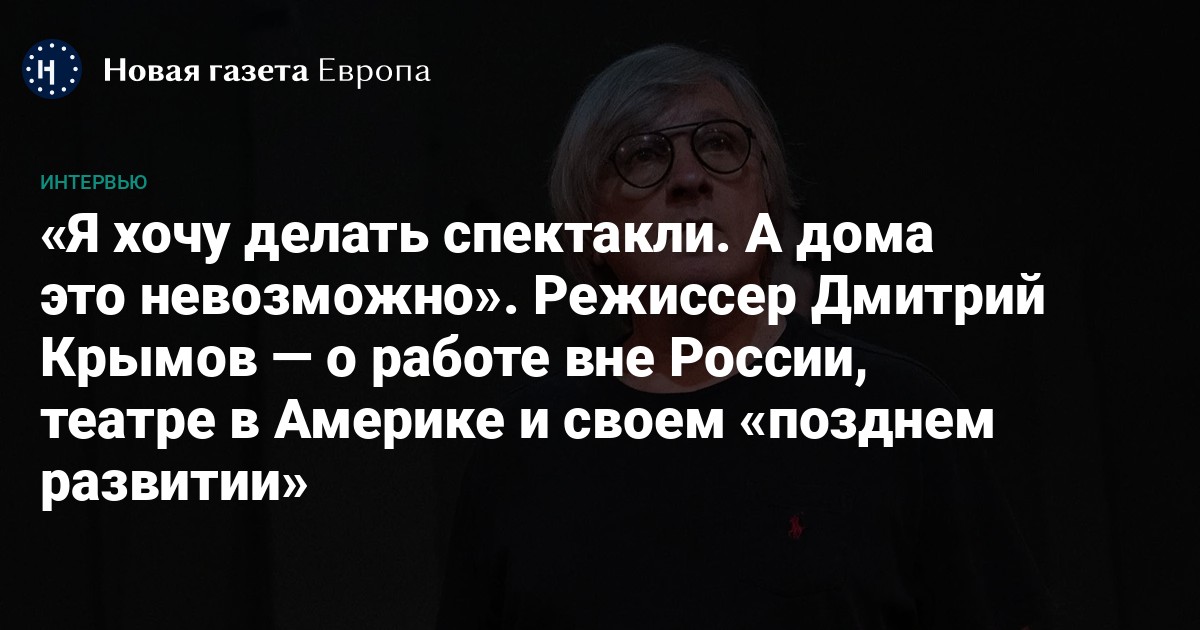 — Могу. Но я хочу делать спектакли. А дома это невозможно: мне ж это показали, сняв почти все мои спектакли и запретив мой фильм (полнометражный кинодебют Крымова — фильм «Всё нормально», снятый в 2021-м и законченный в 2022-м, — не получил прокатного удостоверения. — Прим. авт.). И что мне после этого там делать?! Знаешь, я несколько лет назад как-то составил список театров, которые звали меня на постановку в Москве и в Питере. Кому я только не морочил голову — всё обещал: потом, потом. И вот я сейчас думаю: как же я был избалован! В родном городе — то в один театр, то в другой, да еще на собственной машине, которая под окном стояла! Теперь вот езжу из Риги в Вильнюс, в Прагу поеду, потом в Америку. Но когда есть работа, есть и смысл жить. Мне хочется каким-то образом объединить свои спектакли — чтобы даже то, что я делаю в Америке, было известно моим зрителям в России. Ведь это всё потом должно туда прилететь — через какое-то облако вроде Интернета. Как-то же это должно оказаться там!