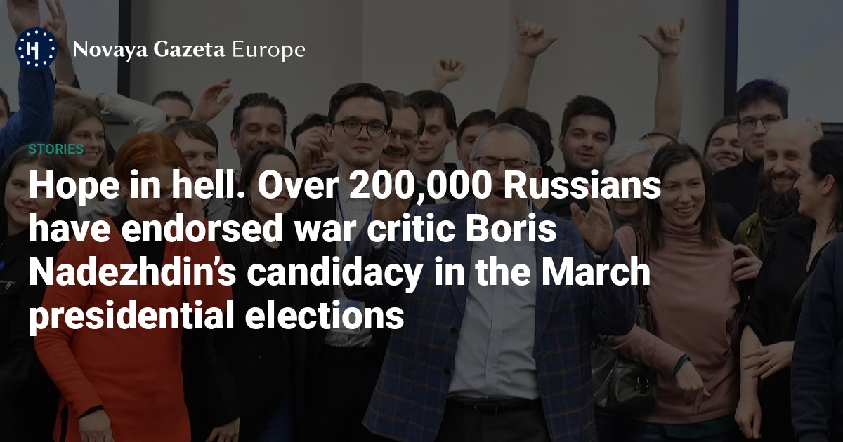 The campaign for Nadezhdin’s nomination — Russia is one of the few countries in the world in which getting onto the ballot is just as much of a challenge as winning the popular vote — received a huge boost in the second half of January, when several opinion leaders announced their support.