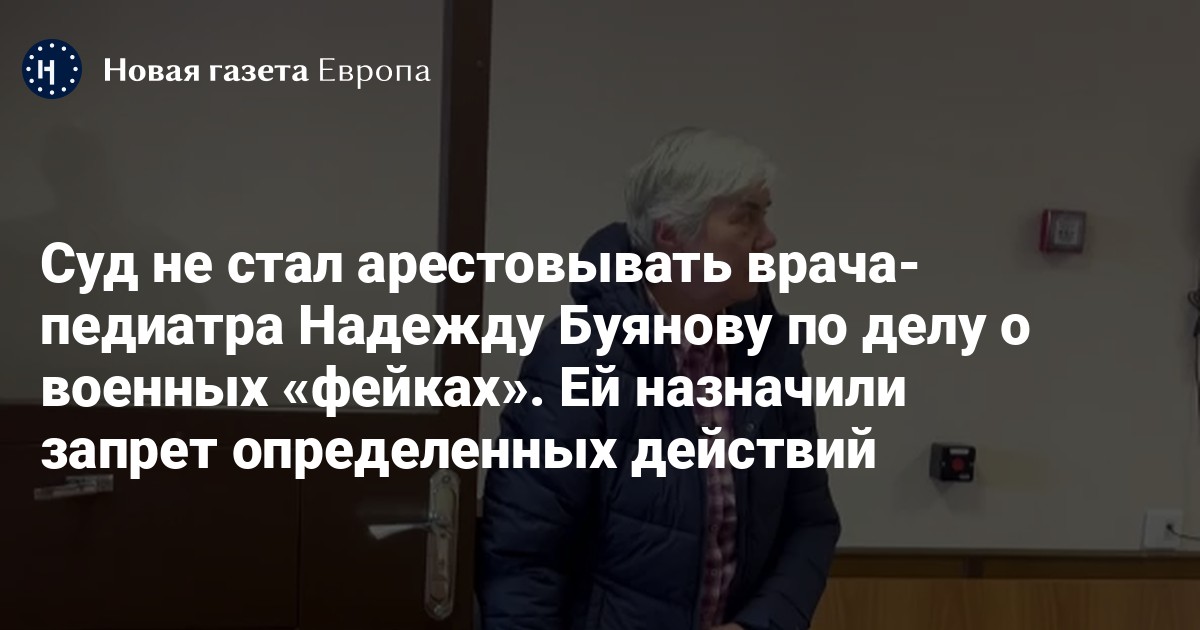 Суд не стал арестовывать врача-педиатра Надежду Буянову по делу о военных «фейках». Ей назначили запрет определенных действий