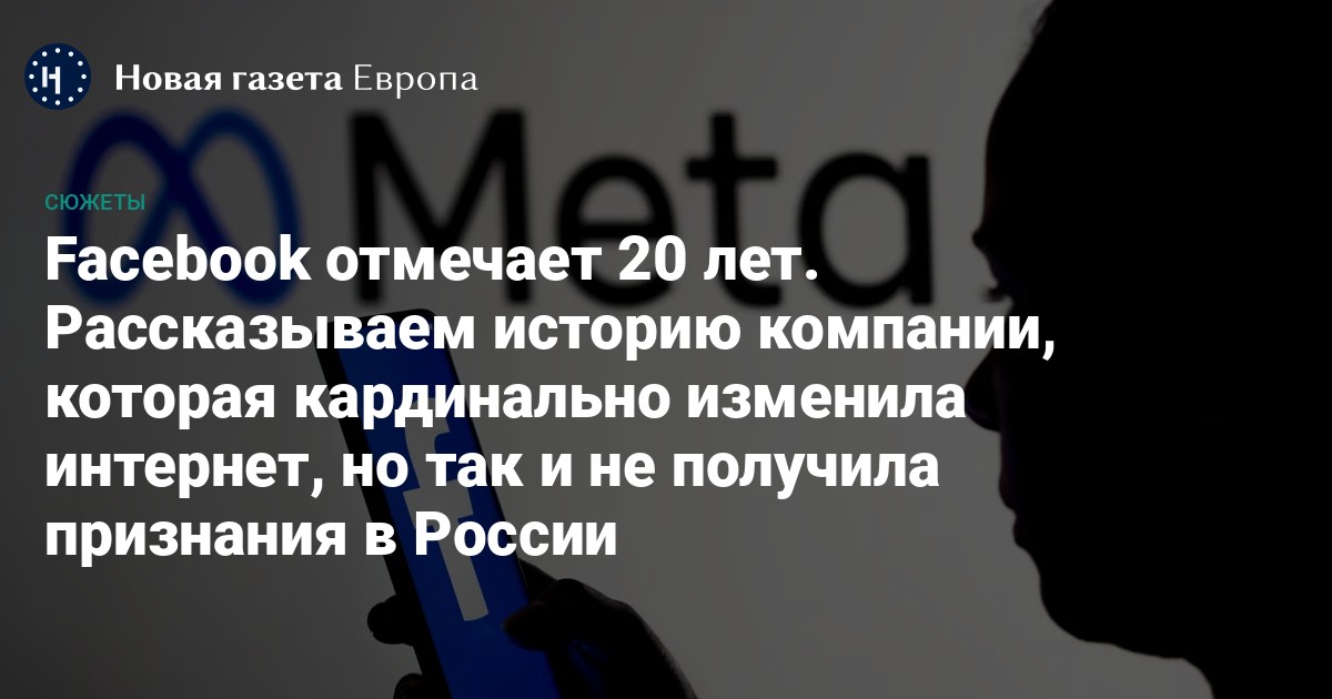 4 февраля 2024 года исполняется 20 лет с запуска Facebook. Социальная сеть, которую изначально придумали для общения студентов престижных американских вузов, получила мировую популярность. Ей каждый месяц активно пользуются 3 миллиарда человек, около 40% населения планеты. «Новая газета Европа» рассказывает, как возникла соцсеть, в каких скандалах отметилась и почему в России так и не получила массовость.