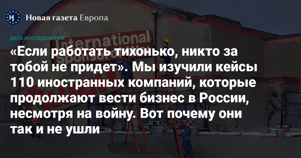 Российские власти любят рассказывать о том, что иностранные компании только притворяются «уходящими» из России, а если всё-таки уходят, то непременно возвращаются. Как показывает исследование «Новой-Европа», зарубежный бизнес дает Кремлю поводы для таких заявлений. Из 110 крупнейших иностранных компаний, которые продолжают работать в России, 51 даже не собирались уходить, а еще 40 передумали или не смогли продать свои активы по выгодной цене. Рассказываем про пять основных стратегий, которые позволяют им оставаться в стране во время войны.