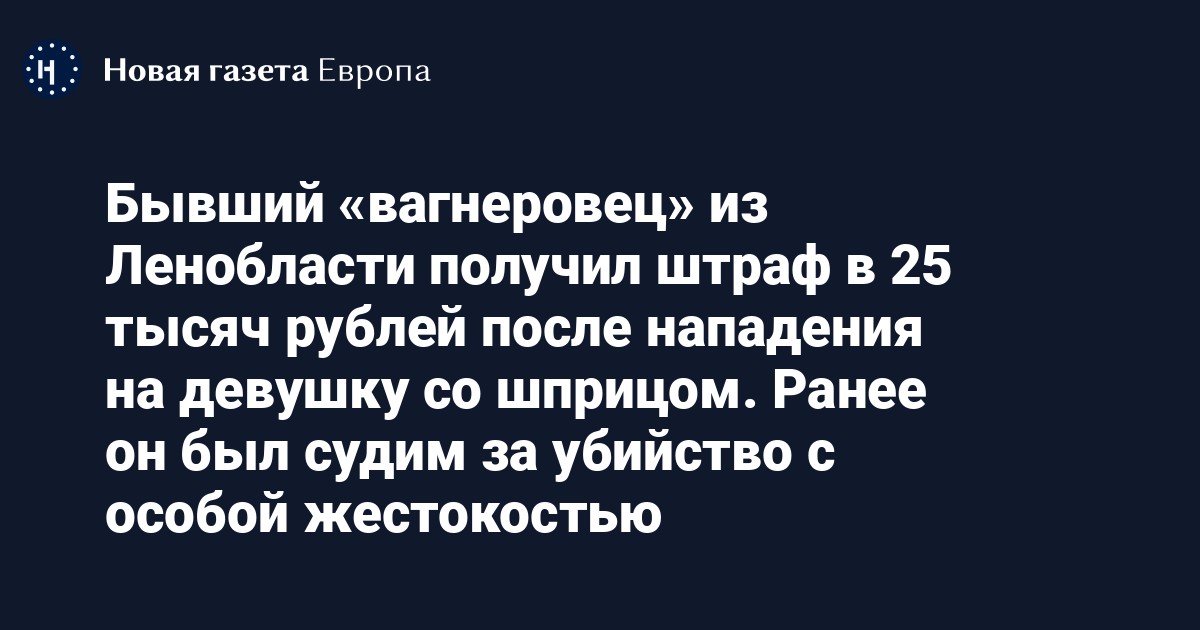 Мировой судья в Токсово Ленинградской области обязал выплатить штраф в размере 25 тысяч рублей местного жителя, бывшего служащего ЧВК «Вагнер» Илью Метлицкого после попытки нападения на девушку, сообщает «Фонтанка».