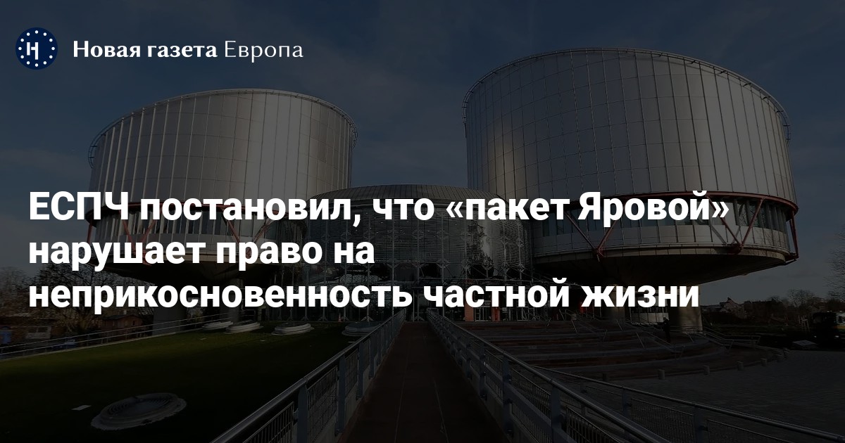 Европейский суд по правам человека признал, что принятый в России «пакет Яровой» нарушает право на неприкосновенность частной жизни. Об этом сообщают «Сетевые Свободы».