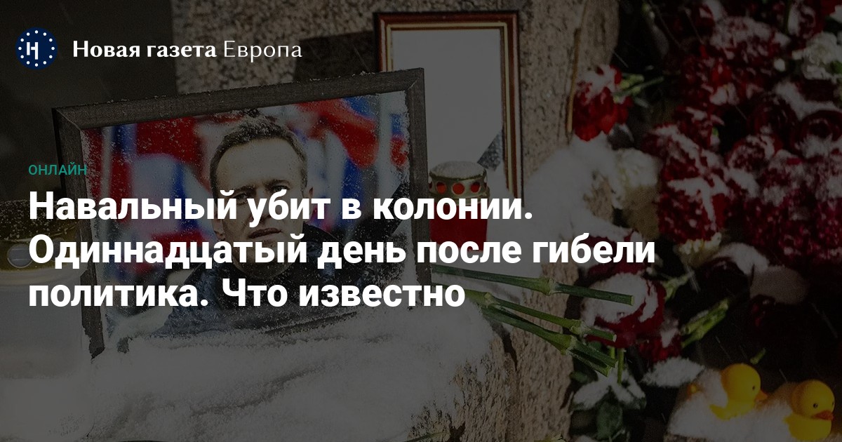 Прошло одиннадцать дней с момента гибели Навального. «Новая-Европа» продолжит освещать события после убийства политика на сайте и в соцсетях.