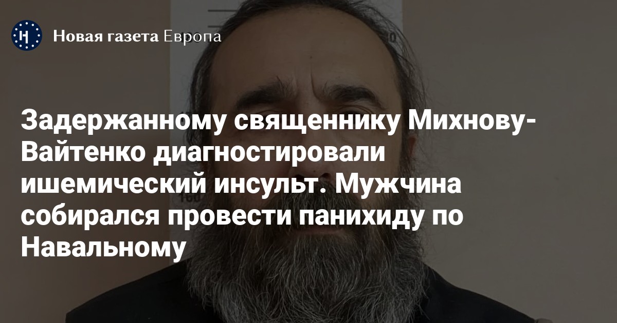 Священнику Григорию Михнову-Вайтенко, который собирался провести панихиду по Алексею Навальному в Санкт-Петербурге, но был задержан полицией после выхода из дома, предварительно диагностировали ишемический инсульт. Об этом «Холоду» рассказала его жена Наталия Сивохина.