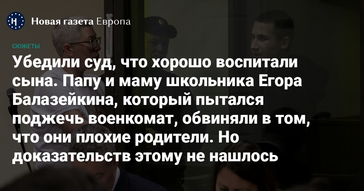 Папу и маму школьника Егора Балазейкина, который пытался поджечь военкомат, обвиняли в том, что они плохие родители. Но доказательств этому не нашлось