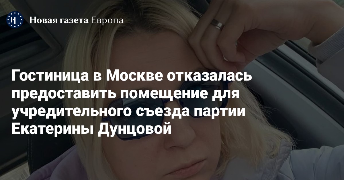 Руководство столичной гостиницы «Альянс Бородино» расторгло с Екатериной Дунцовой договор о предоставлении помещения для учредительного съезда партии «Рассвет», который должен был состояться с 9 по 10 марта. Об этом журналистка рассказала в своем телеграм-канале.