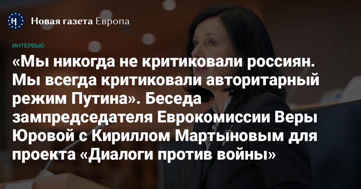 Беседа зампредседателя Еврокомиссии Веры Юровой с Кириллом Мартыновым для проекта «Диалоги против войны»