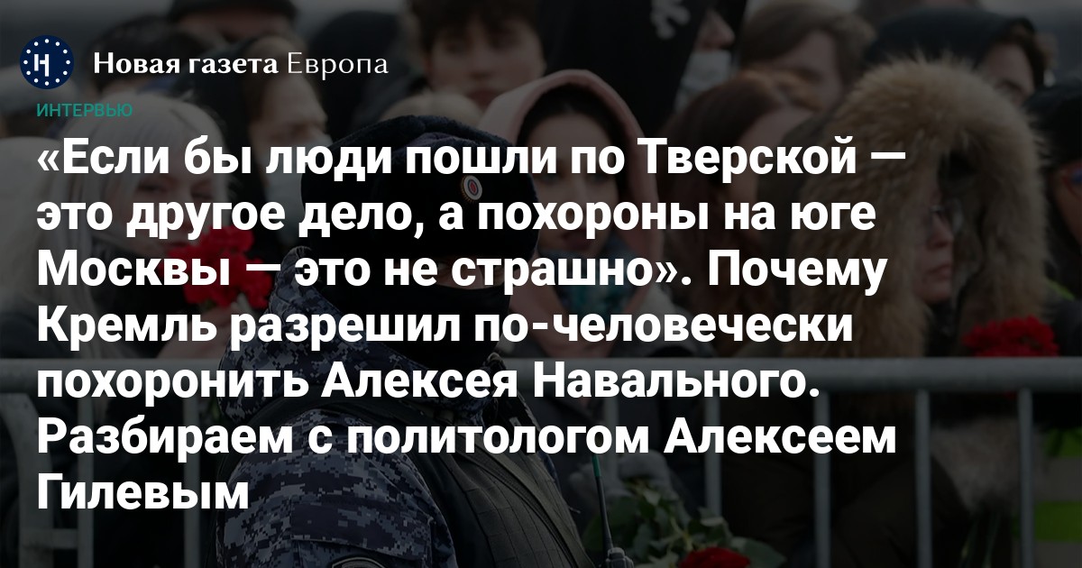 На четвертый день после прощания с Алексеем Навальным в Москве начали задерживать людей, приходивших с 1 марта с цветами на Борисовское кладбище. Всё это время, пока росла гора цветов на могиле, мы тихо удивлялись: а почему они вообще такое допустили? Вопрос о том, почему вдруг, совершенно неожиданно, людям разрешили нормально похоронить человека, в России сейчас не кажется странным. А действительно: почему допустили? Объясняет политолог, кандидат политических наук Алексей Гилев.