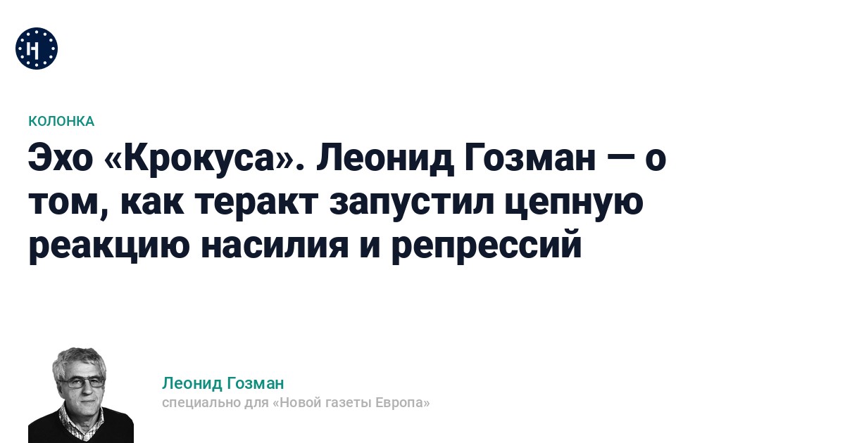 Многие считают, что «Крокус» будет использован для ужесточения репрессий. Да, репрессии станут — с каждым днем становятся — всё более масштабными, но этот процесс, как и движение к войне, идет уже очень давно и без всякого «Крокуса». Еще вчера казалось невозможным, что будут сажать за то, за что сажают сегодня. И это, увы, не конец. Система встала на рельсы и движется по ним с ускорением g. Теракт не при чём.