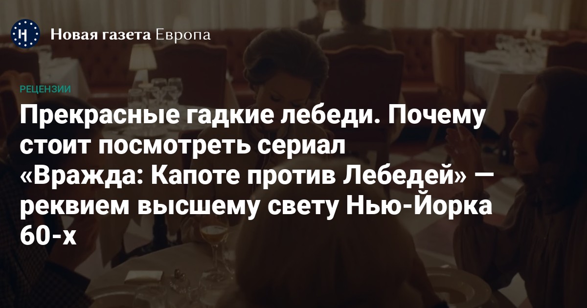 Почему стоит посмотреть сериал «Вражда: Капоте против Лебедей» — реквием высшему свету Нью-Йорка 60-х