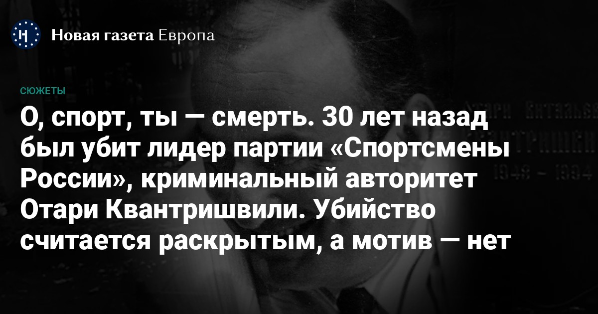 12 января 1994 года в Нью-Йорке киллер выстрелом в затылок убивает Олега Коротаева. Это преступление до конца тоже так и не раскрыто. В феврале Отари Квантришвили помпезно учреждает партию «Спортсмены России». Сопредседателями партии становятся такие знаменитости, как Александр Карелин (борец греко-римского стиля, трехкратный олимпийский чемпион, девятикратный чемпион мира, 12-кратный чемпион Европы, в настоящее время член Совета Федерации РФ), Иван Ярыгин (борец вольного стиля, двукратный олимпийский чемпион, трехкратный чемпион Европы, чемпион мира, погиб в автокатастрофе 11 октября 1997 года) и Александр Тихонов (биатлонист, четырехкратный олимпийский чемпион, 11-кратный чемпион мира, в августе 2000 года был обвинен в подготовке покушения на губернатора Кемеровской области Амана Тулеева, до 2006 года скрывался в Австрии, вернулся в Россию, в 2007 году предстал перед судом, был признан виновным, приговорен к трем годам лишения свободы и тут же амнистирован в связи с 62-летием Победы в Великой Отечественной войне).