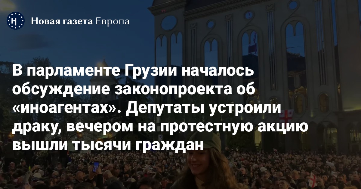 В Тбилиси несколько тысяч человек собрались у здания парламента Грузии на акции против закона об «иноагентах», сообщает корреспондент «Новой-Европа».