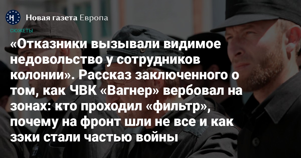 Уже полтора года российские власти отправляют на войну в Украину заключенных. Раньше на фронт их заманивали перспективой помилования и снятия судимости — осужденные даже за насильственные преступления могли оказаться на свободе после шести месяцев контракта с ЧВК «Вагнер». Однако эта практика исчезла. Теперь вместо помилования со стороны Путина заключенные получают только условное освобождение, и их отправляют служить до завершения так называемой спецоперации. О том, как вербовали на войну в одной из российских колоний, в своем письме рассказал заключенный, попросивший не указывать его имя. «Новая-Европа» публикует его историю: как заключенные узнали о начале войны и как им предлагали заключить контракт с «вагнеровцами».