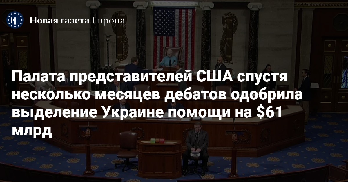 Палата представителей США (нижняя палата американского Конгресса) одобрила выделение Украине пакета помощи общей стоимостью в $61 млрд. Об этом свидетельствует трансляция на сайте американского парламента.