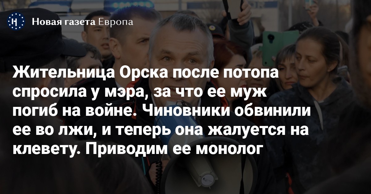 Издание приводит монолог Хисматуллиной о последствиях наводнения и ее разговоре с мэром Орска.
