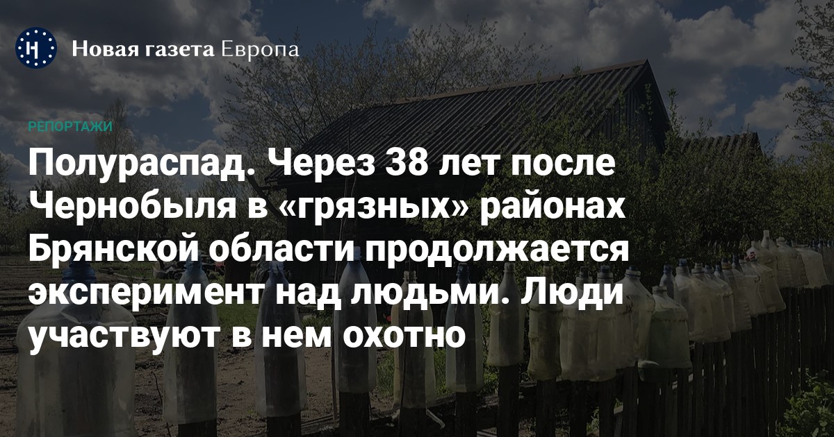 Тридцать восемь лет назад, 26 апреля 1986-го, в Советском Союзе взорвался реактор Чернобыльской АЭС. От выброса радиации пострадали регионы в Украине и Белоруссии, а в России катастрофа затронула 14 областей, ее последствия докатились до Петербурга, но больше всего досталось юго-западу Брянщины. Еще через пять лет СССР развалился, и дальше каждая из трех бывших союзных республик с последствиями справлялась в одиночку. В Беларуси до сих пор в лесах стоят знаки радиационной опасности и висят таблички с предупреждениями о том, что собирать грибы можно только под радиологическим контролем. Под Брянском в «чернобыльской» зоне живут триста тысяч человек, собирают грибы, продают их на обочине шоссе, возят на рынок свою картошку. «Новая-Казахстан» спросила, почему они не уехали с зараженных земель и как там живется 38 лет спустя.