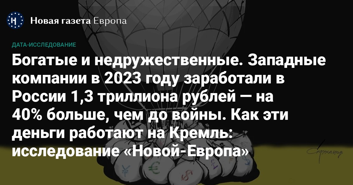 Западные компании в 2023 году заработали в России 1,3 триллиона рублей — на 40% больше, чем до войны. Как эти деньги работают на Кремль: исследование «Новой-Европа»
