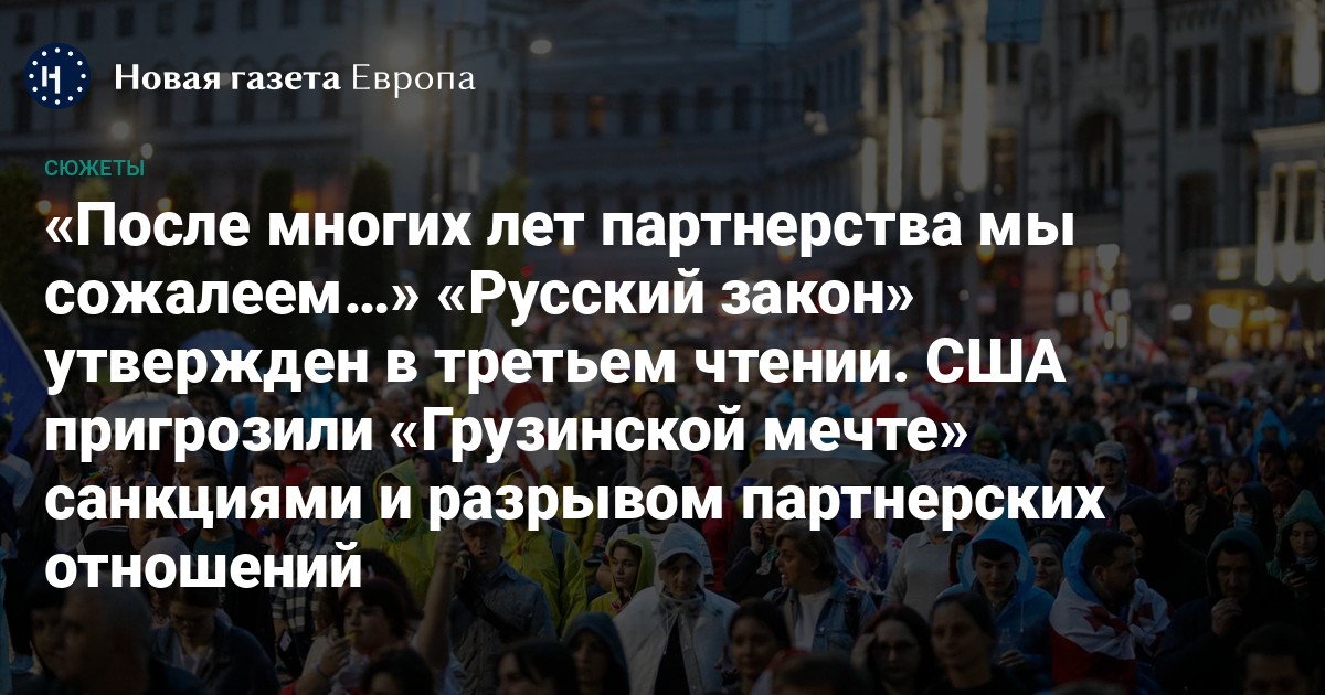 «Русский закон» утвержден в третьем чтении. США пригрозили «Грузинской мечте» санкциями и разрывом партнерских отношений