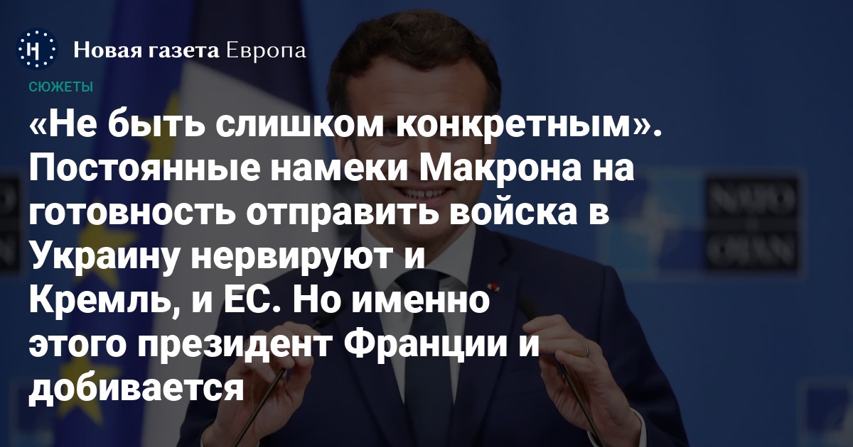 Постоянные намеки Макрона на готовность отправить войска в Украину нервируют и Кремль, и ЕС. Но именно этого президент Франции и добивается