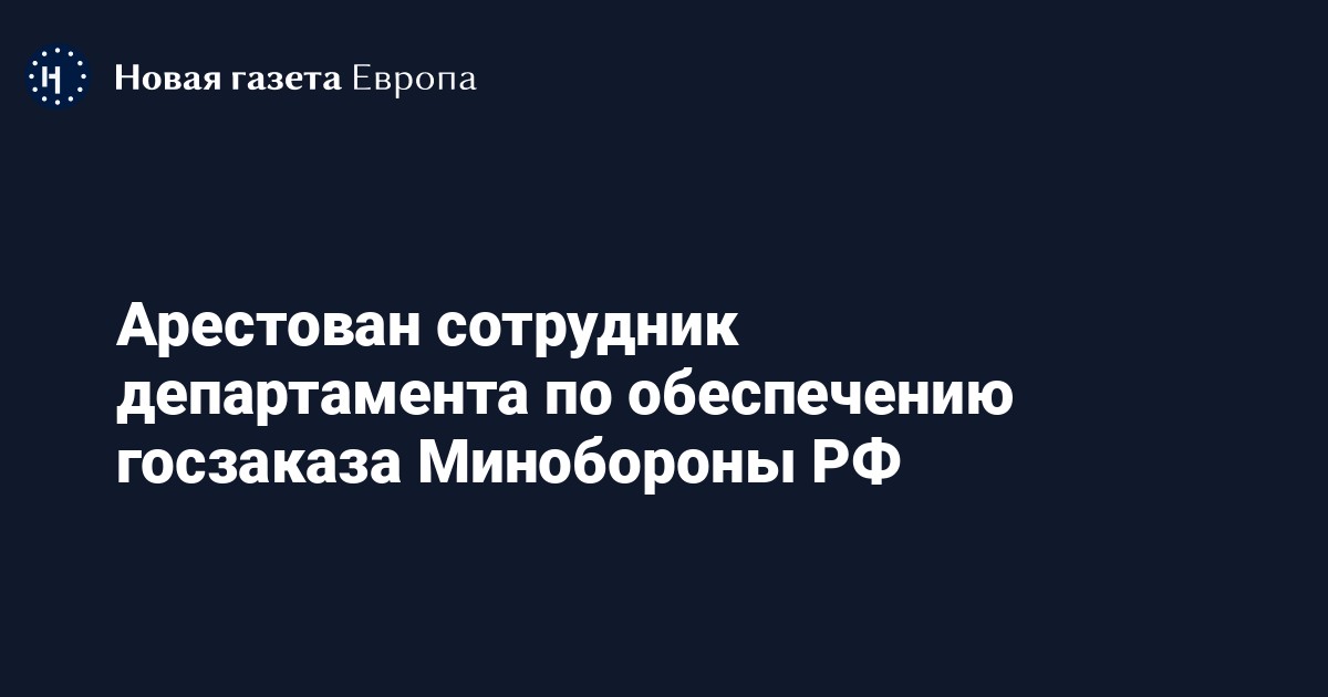 Арестован сотрудник департамента по обеспечению госзаказа Минобороны РФ