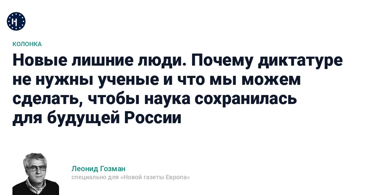 В свое время немецкие ученые, уехавшие в Америку от Гитлера, внесли немалый вклад в технологическое и моральное лидерство США в послевоенные годы. Российские (как и белорусские) ученые, уехавшие от Путина и его войны, могли бы сделать не меньше для стран европейской цивилизации. Но для этого приютившие их страны должны понять, что русская научная диаспора не столько объект благотворительности, сколько ресурс.
