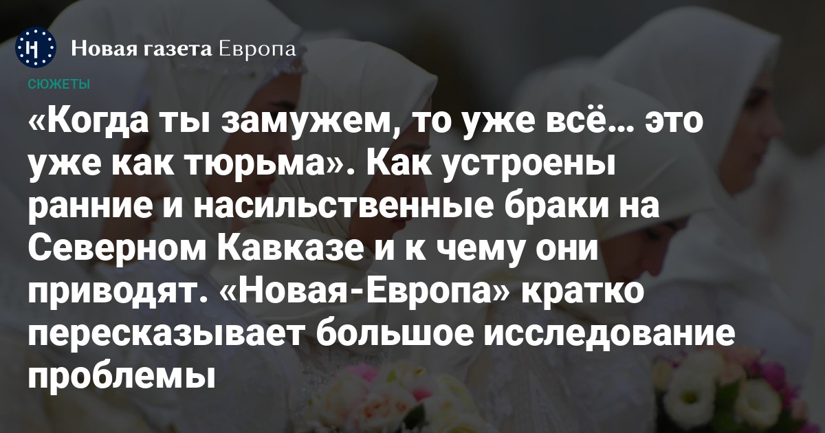 Правозащитники из AD REM — команды юристов, адвокатов и специалистов по вопросам дискриминации и домашнего насилия — выпустили доклад «Насильно замужем», для которого изучили проблему ранних и принудительных браков на примере Дагестана, Ингушетии и Чечни. Во многих сообществах на Северном Кавказе, говорится в исследовании, такая практика стала допустимым явлением.
