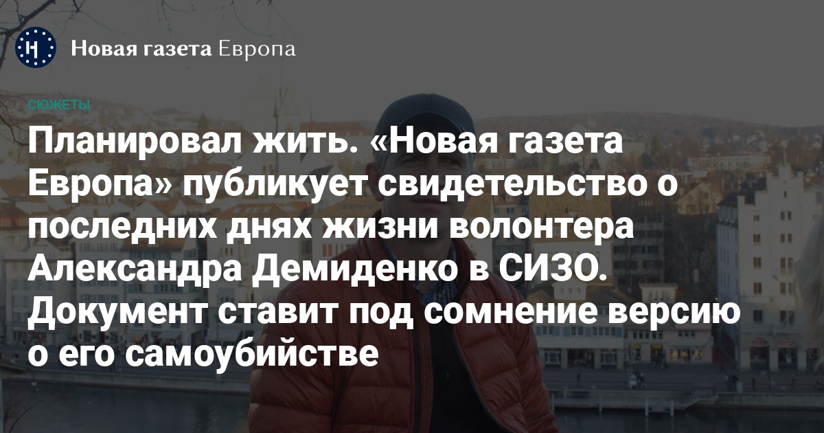 Журналистка «Новой газеты Европа», которая была знакома с Демиденко, сумела раздобыть свидетельство человека, заставшего последние дни Александра. Его слова заставляют усомниться в версии о том, что Демиденко совершил самоубийство. В целях безопасности источник попросил сохранить его анонимность.