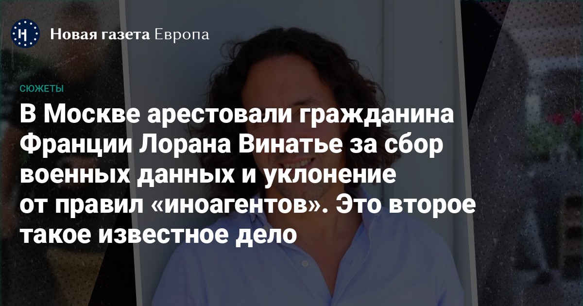 Суд в Москве арестовал гражданина Франции, сотрудника швейцарского Центра гуманитарного диалога Лорана Винатье. Это лишь второе известное уголовное дело, возбужденное в России по статье о сборе военных сведений без регистрации «иностранным агентом» (ч. 3 ст. 330.1 УК).