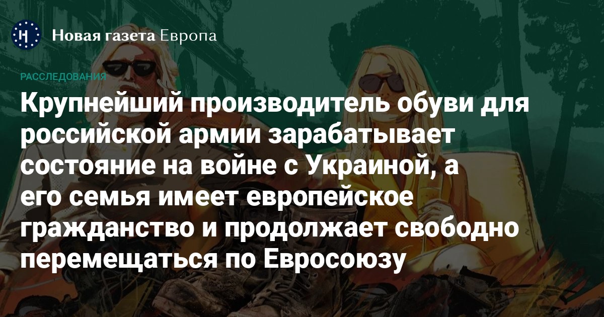 Крупнейший производитель обуви для российской армии зарабатывает состояние на войне с Украиной, а его семья имеет европейское гражданство и продолжает свободно перемещаться по Евросоюзу