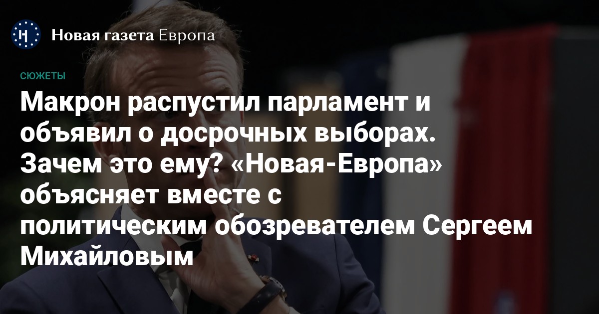 Провал партии Макрона — это главная и единственная причина роспуска нижней палаты парламента, заявил Михайлов в разговоре с «Новой-Европа».
