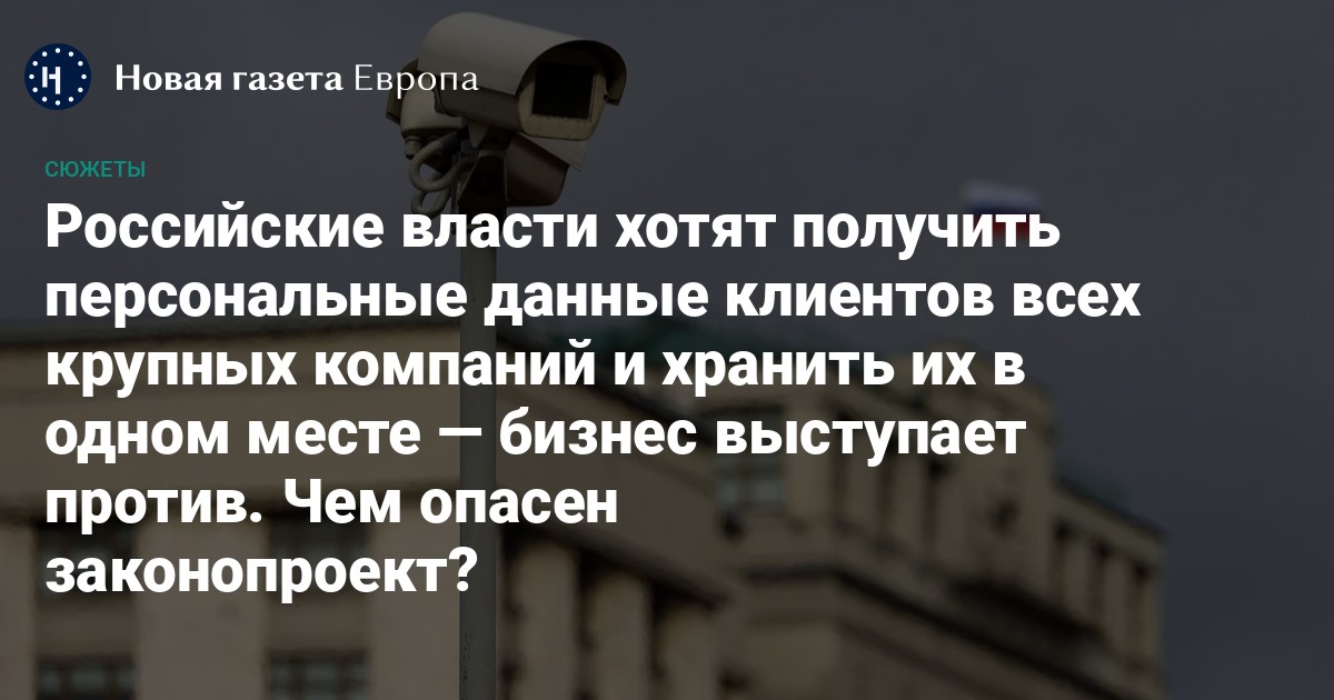 Российские власти хотят получить персональные данные клиентов всех крупных компаний и хранить их в одном месте — бизнес выступает против. Чем опасен законопроект?