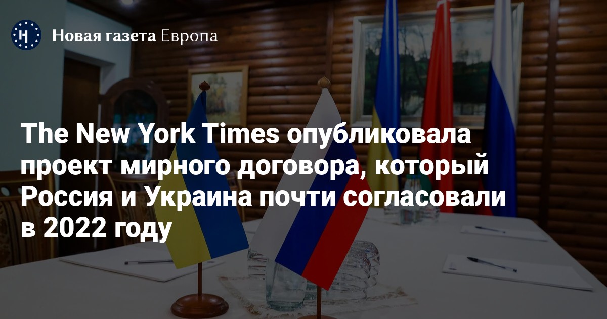 Газета The New York Times опубликовала проект мирного договора между Россией и Украиной, который стал результатом переговоров между сторонами с февраля по апрель 2022 года, но в итоге так и не был подписан.