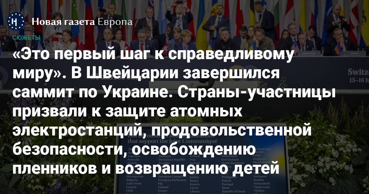 Участники конференции 16 июня подписали коммюнике, затрагивающее три пункта из «формулы мира» украинского лидера. Подробнее о событиях саммита мира — в материале «Новой газеты Европа».