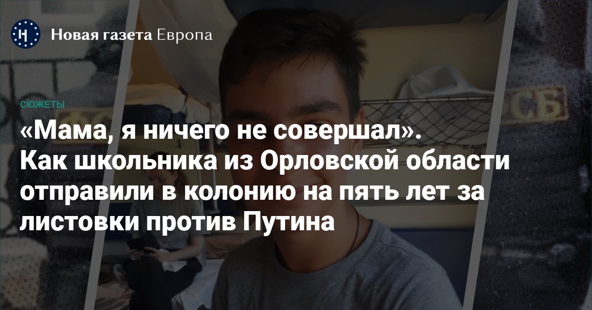 В райцентре Ливны 15-летнего Арсения Турбина приговорили к пяти годам колонии за терроризм. Подросток с уникальными математическими способностями увлекался физикой и техникой, но собирался после школы учиться на политолога, потому что думал: разберется в происходящем в стране и поймет, как сделать Россию прекрасной. Но в десятый класс он пойдет на зоне. Когда его сверстники будут поступать в вузы, ему останется сидеть еще три года.