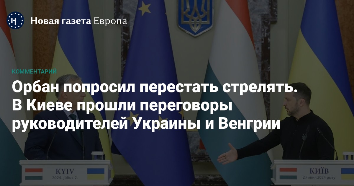 В заявлении для прессы после двусторонних переговоров тет-а-тет с президентом Украины Орбан признал, что предлагал Зеленскому безотлагательное прекращение огня по той линии соприкосновения с российскими войсками, которая есть сейчас. То есть сначала просто перестать стрелять, а потом уж решать, как перейти от перемирия к миру. «Я рассказал господину президенту, что его инициативы требуют много времени из-за правил международной дипломатии. Потому я попросил господина президента подумать о том, нельзя ли поступить немножко иначе: остановить огонь, а затем вести переговоры с Россией, ведь прекращение огня ускорило бы темпы этих переговоров», — заметил гость. Впрочем, тут же Виктор Орбан оговорился, что не настаивал на своей инициативе и воспринял украинские аргументы.