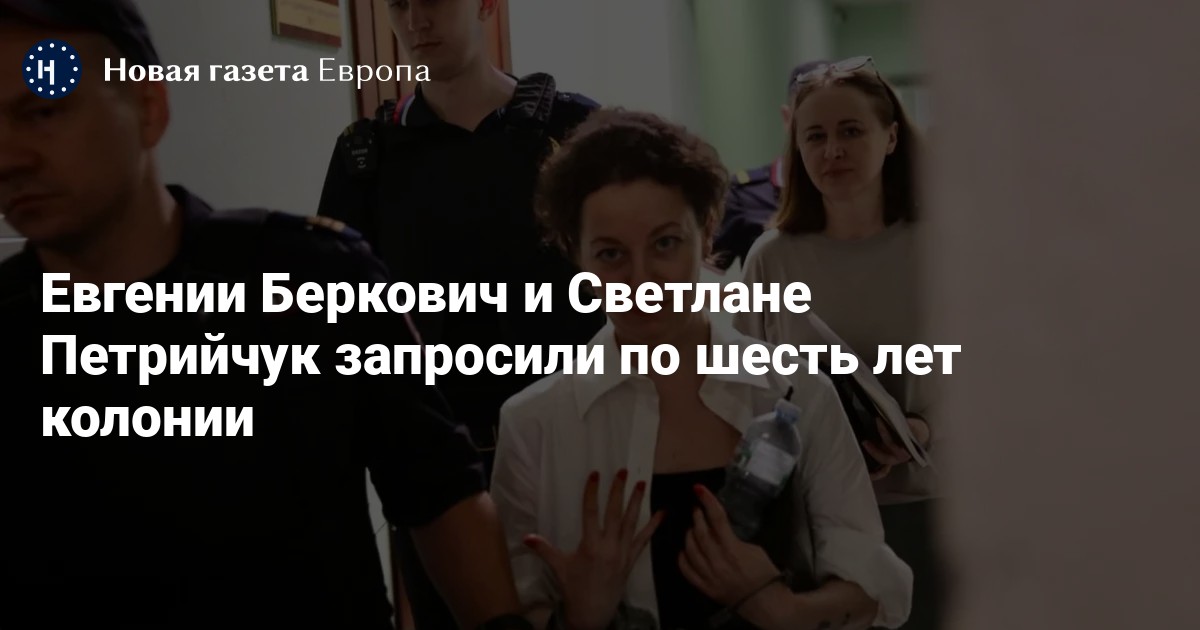 Сторона обвинения запросила по шесть лет колонии режиссерке Евгении Беркович и сценаристке Светлане Петрийчук. Об этом сообщила сторона защиты, обратила внимание «Медиазона».