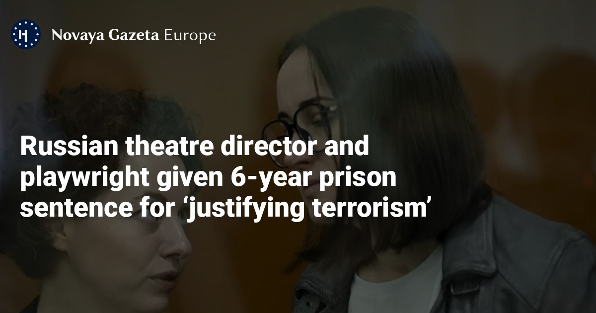 Russian theatre director Yevgenia Berkovich and playwright Svetlana Petriychuk were sentenced to six years in prison by a Moscow court for “justifying terrorism” on Monday, Russian independent media outlet Mediazona reported.